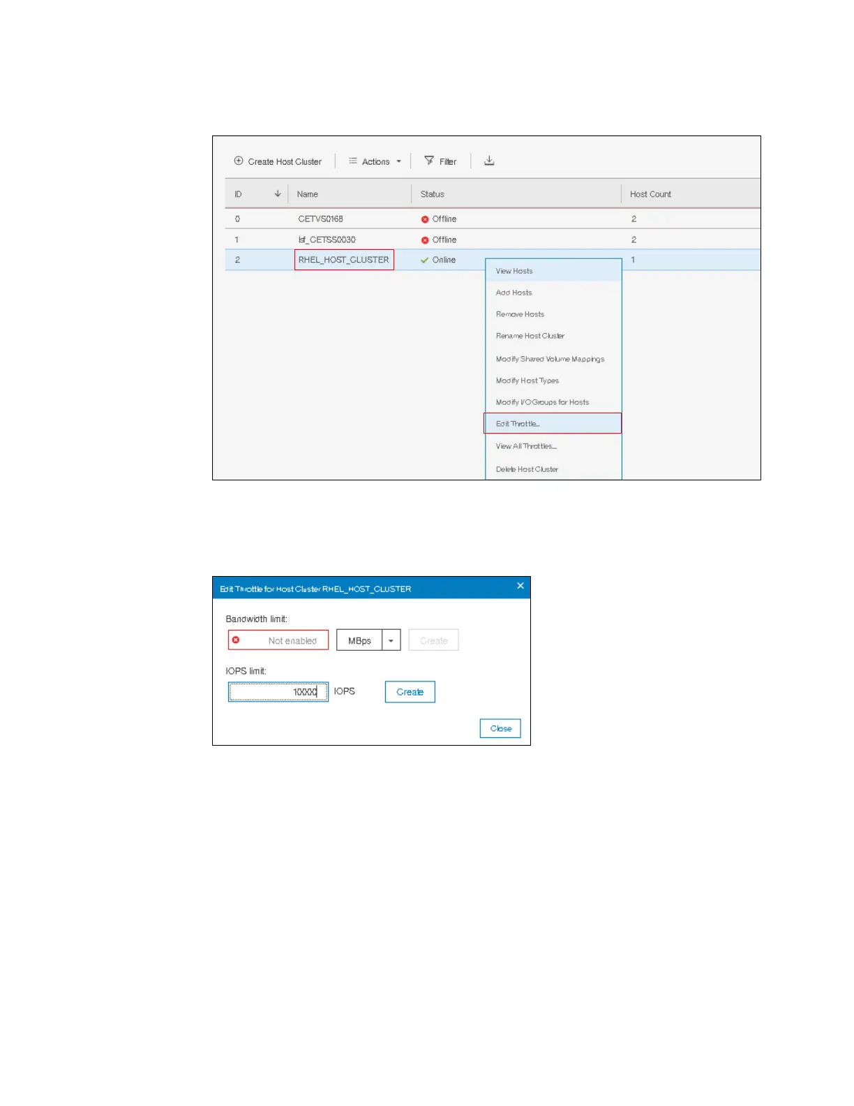 2. Right-click the desired host cluster and select Edit Throttle, as shown in Figure 5-118.