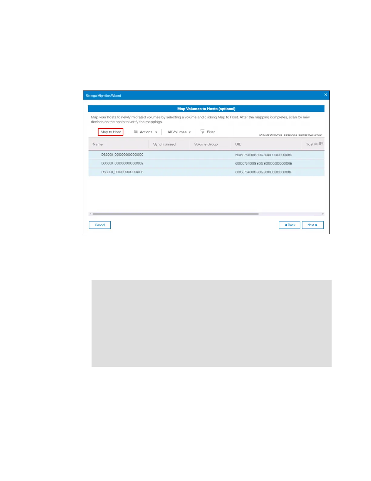 1. Hold Ctrl and click the volume names to select multiple volumes. Click Map to Host to
