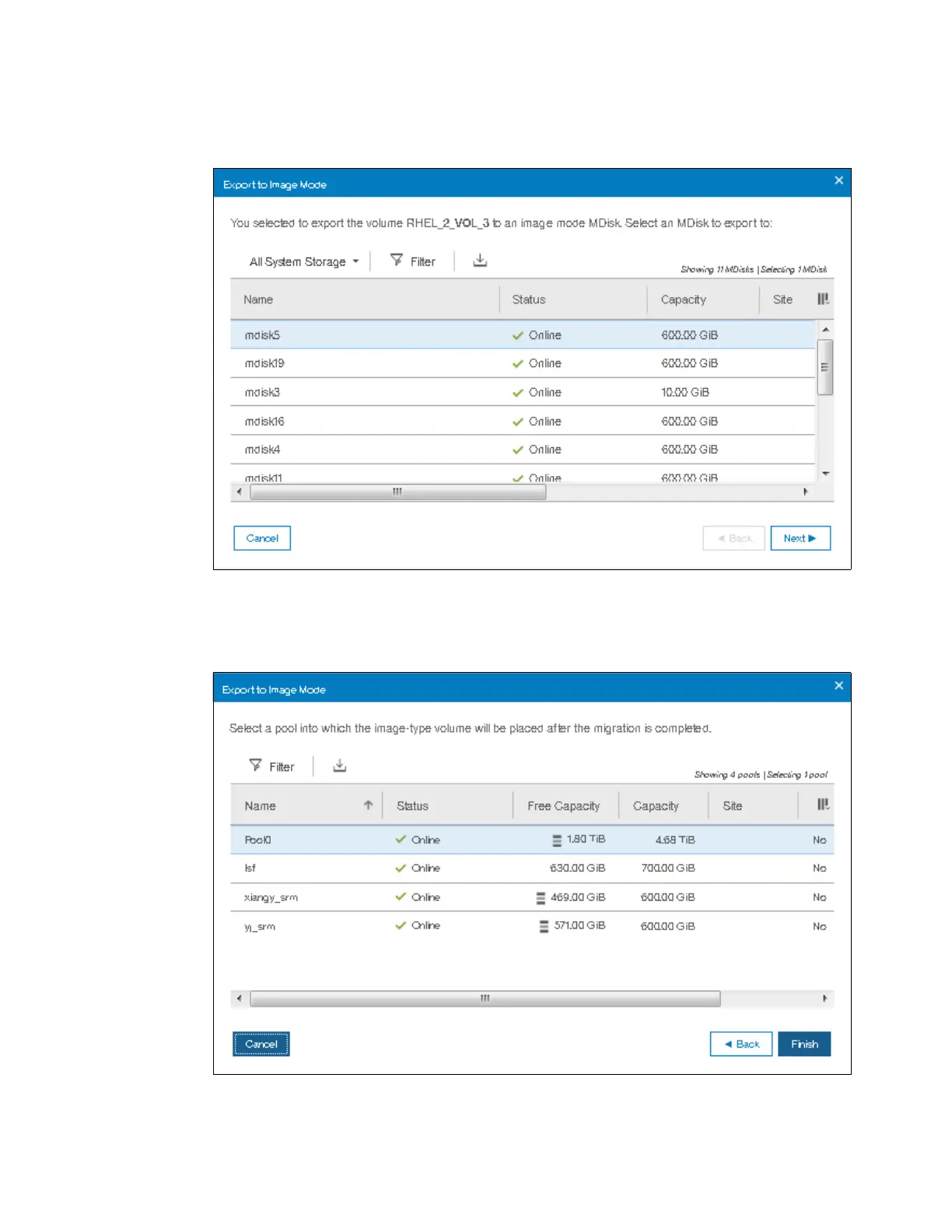 3. Select a storage pool into which the image-mode volume is placed after the migration