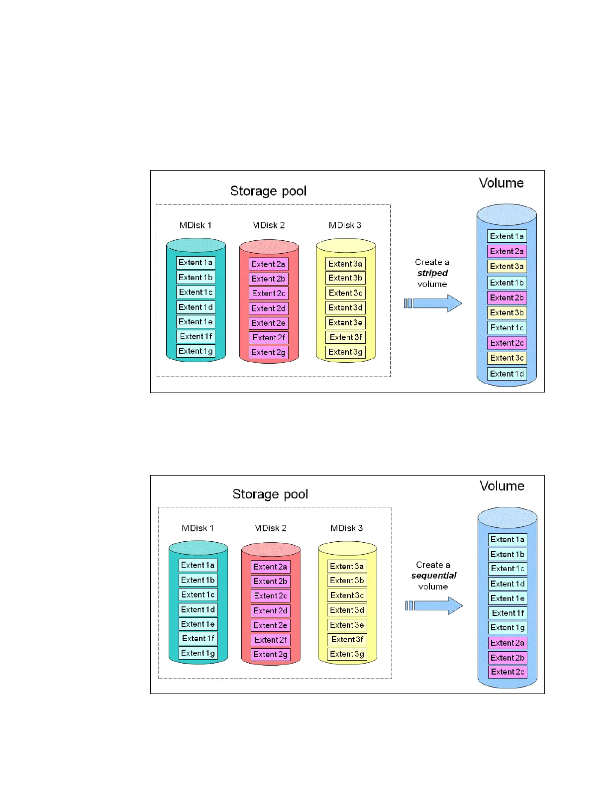 A striped volume is allocated one extent in turn from each MDisk in the storage pool. This