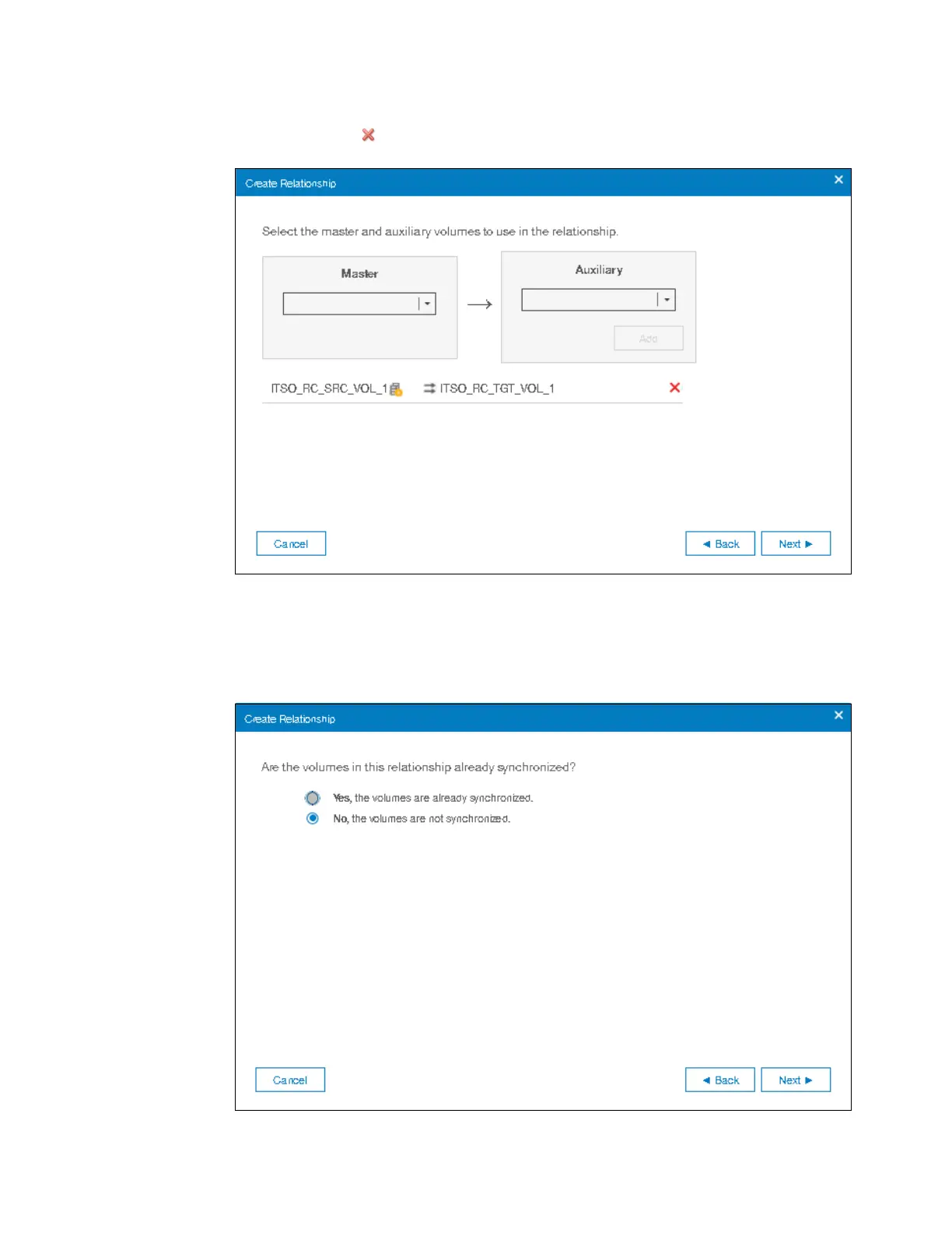 Figure 10-107 Create the relationships between the master and auxiliary volumes