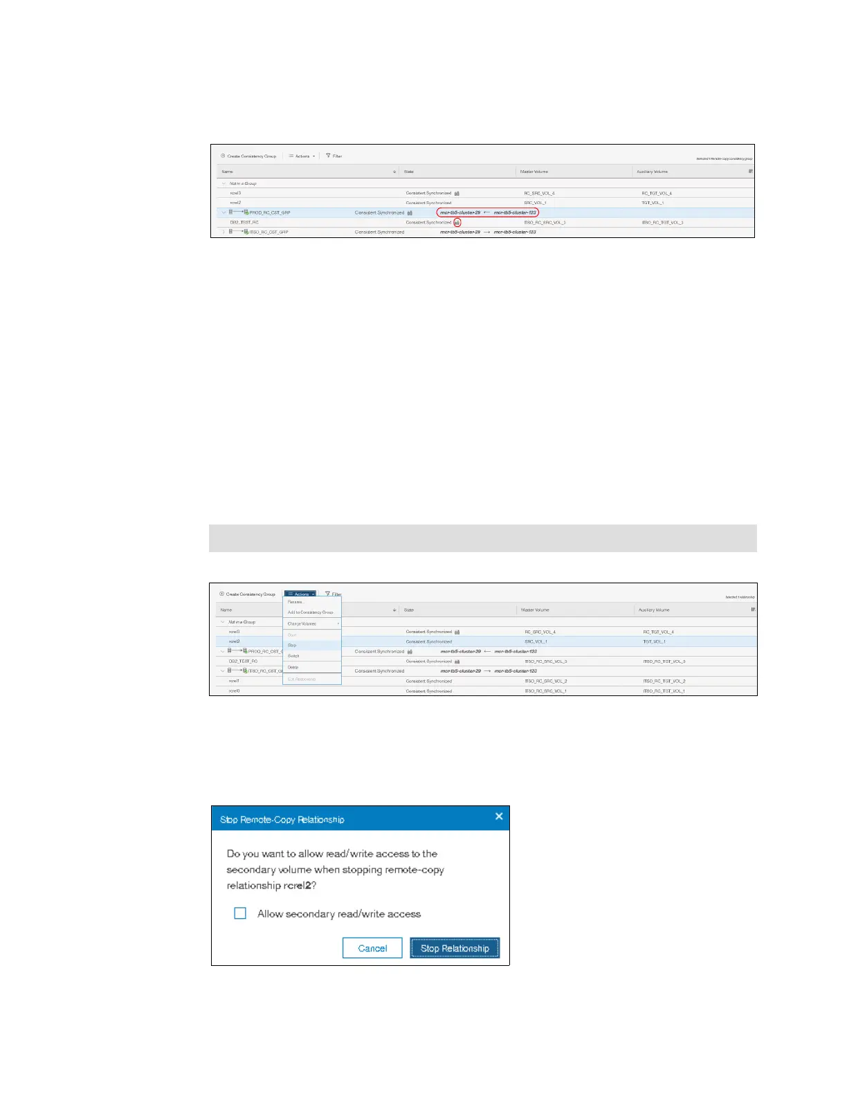 After it is started, the remote copy process can be stopped, if needed. Only relationships that