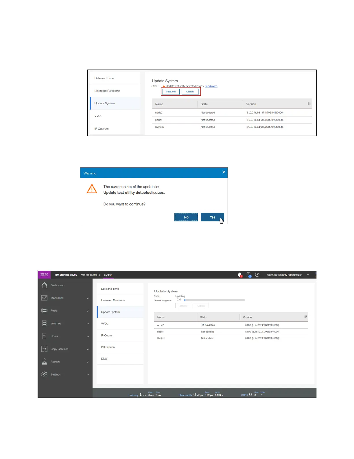 Clicking Resume continues the software update. Clicking Cancel cancels the software
