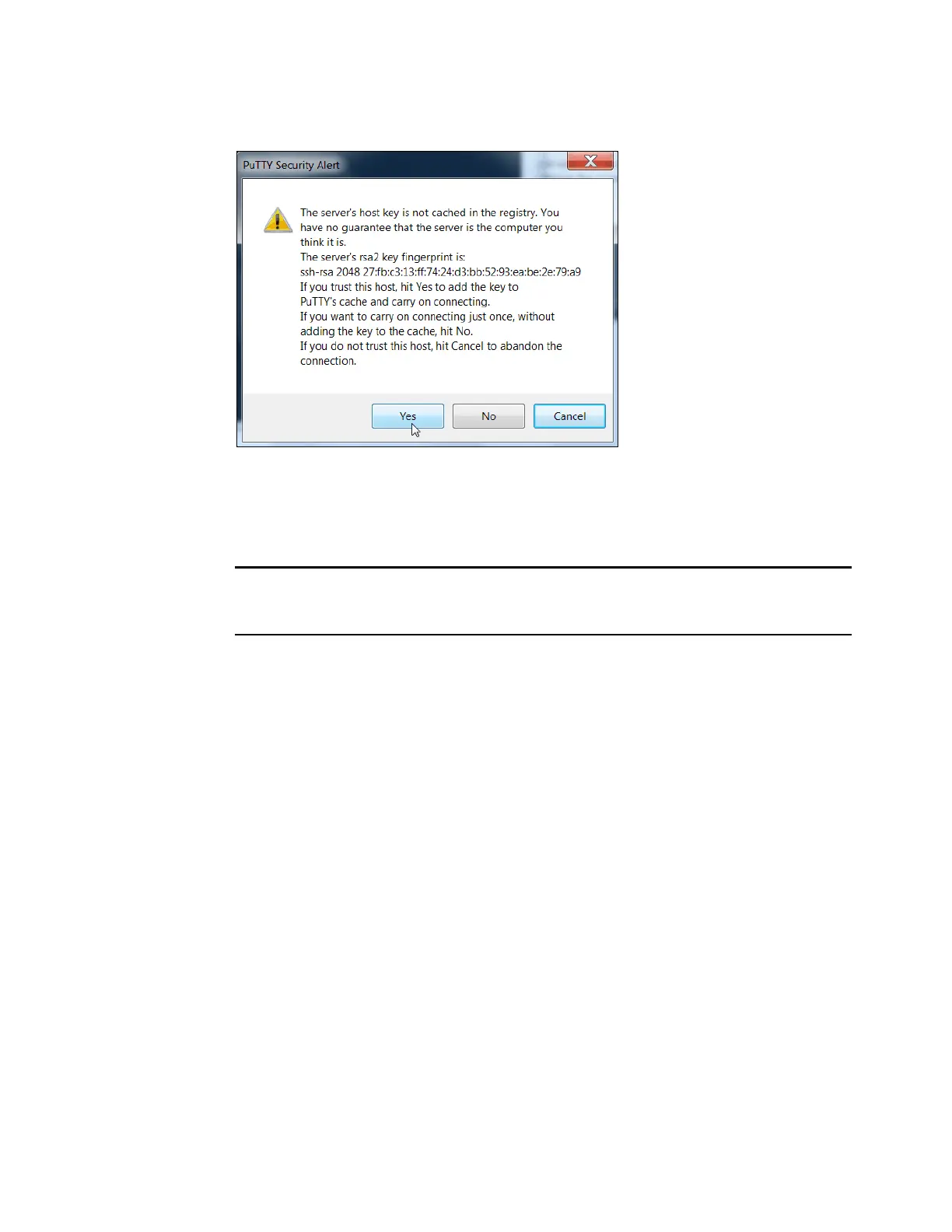 8. If a PuTTY Security Alert window opens. Confirm it by clicking Yes (Figure A-19).
