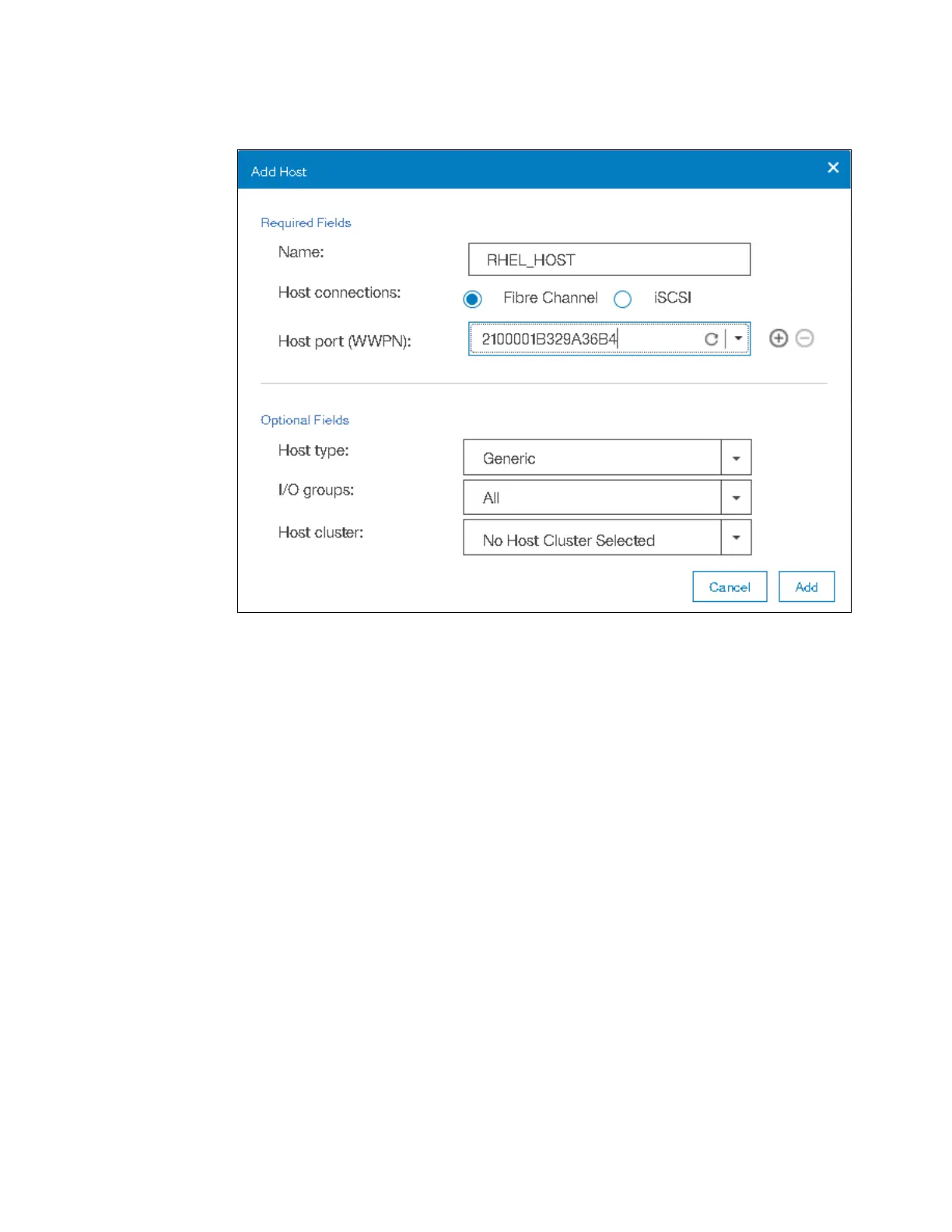 4. If you want to add additional ports to your Host, click the plus sign (+).