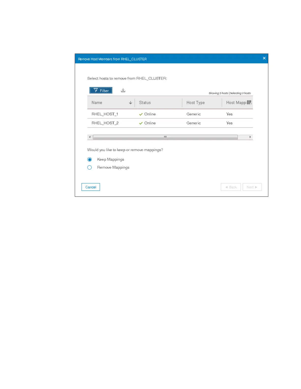 3. A window will be shown with list of hosts that are members of the host cluster, as shown in