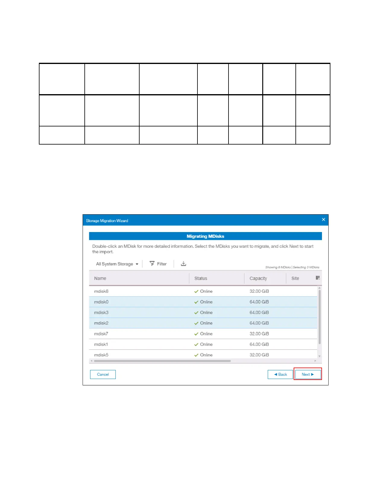 Select the MDisks from the existing storage system to migrate and click Next. Figure 7-17