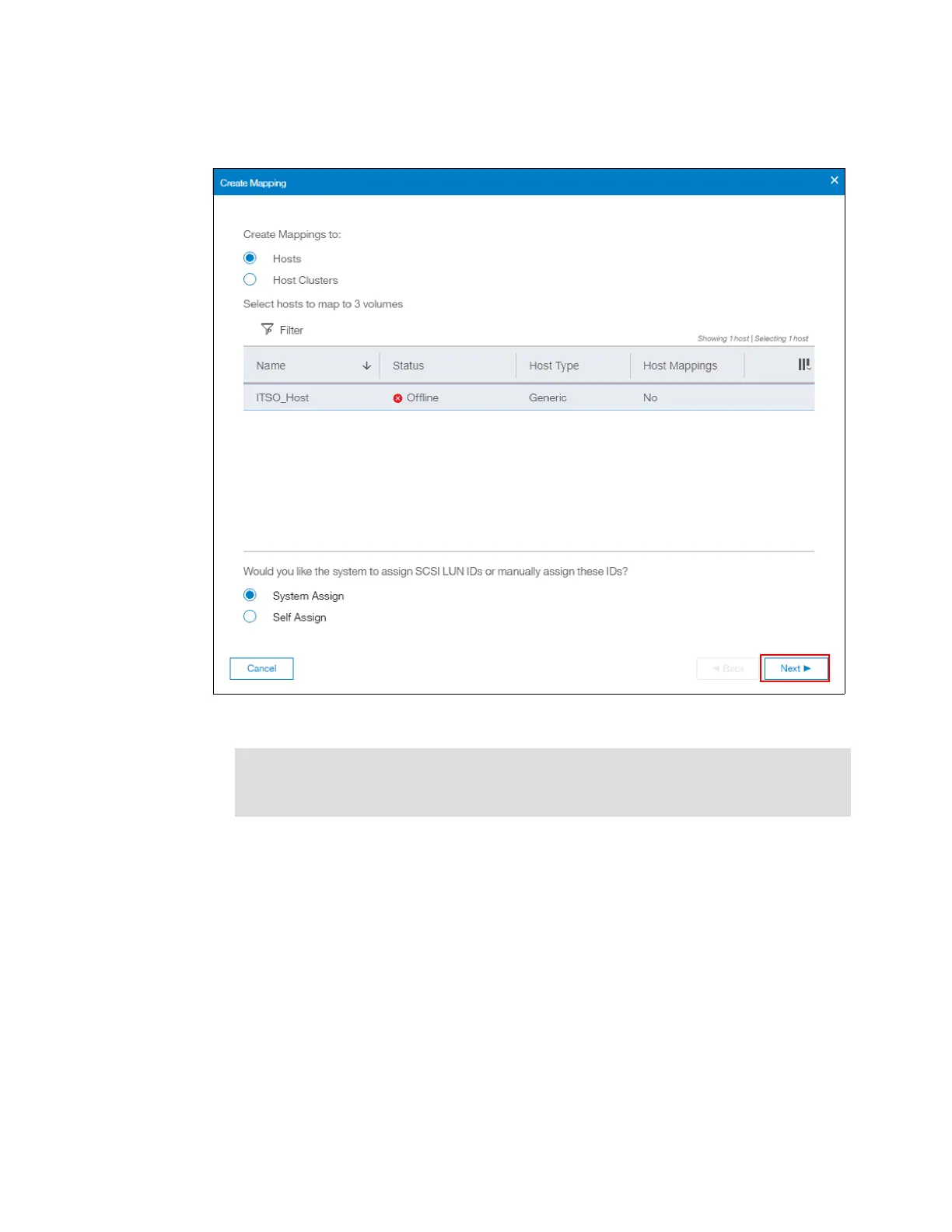 3. Select from the host list the hosts to which the imported volumes will be mapped, as