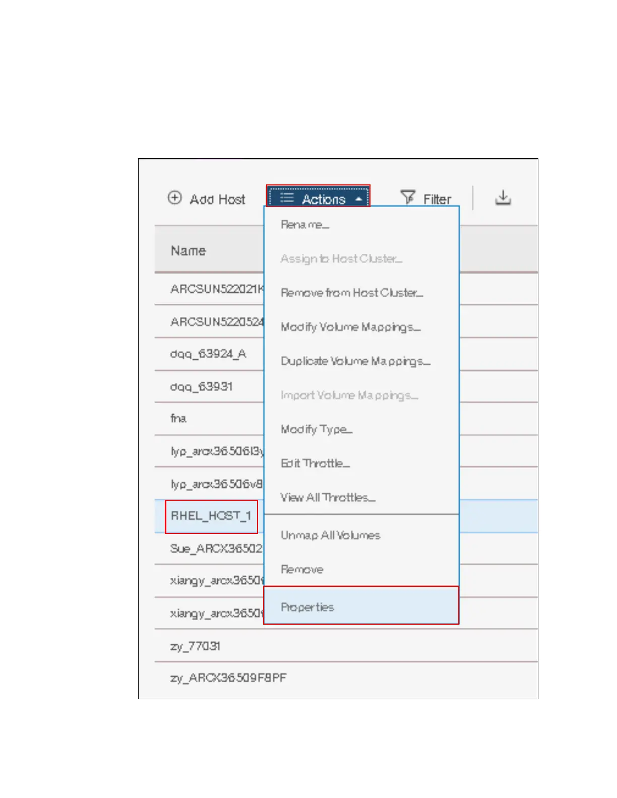 2. From the Actions menu, click Properties. You can also highlight the host and right-click to