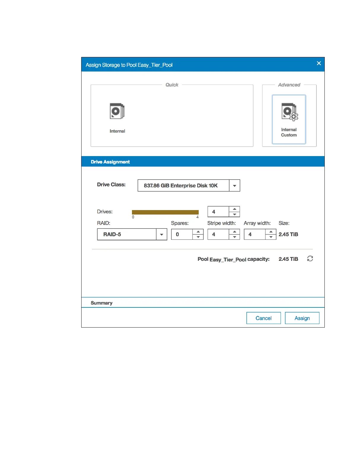 Figure 9-13 Add Storage - Advanced Internal Custom panel