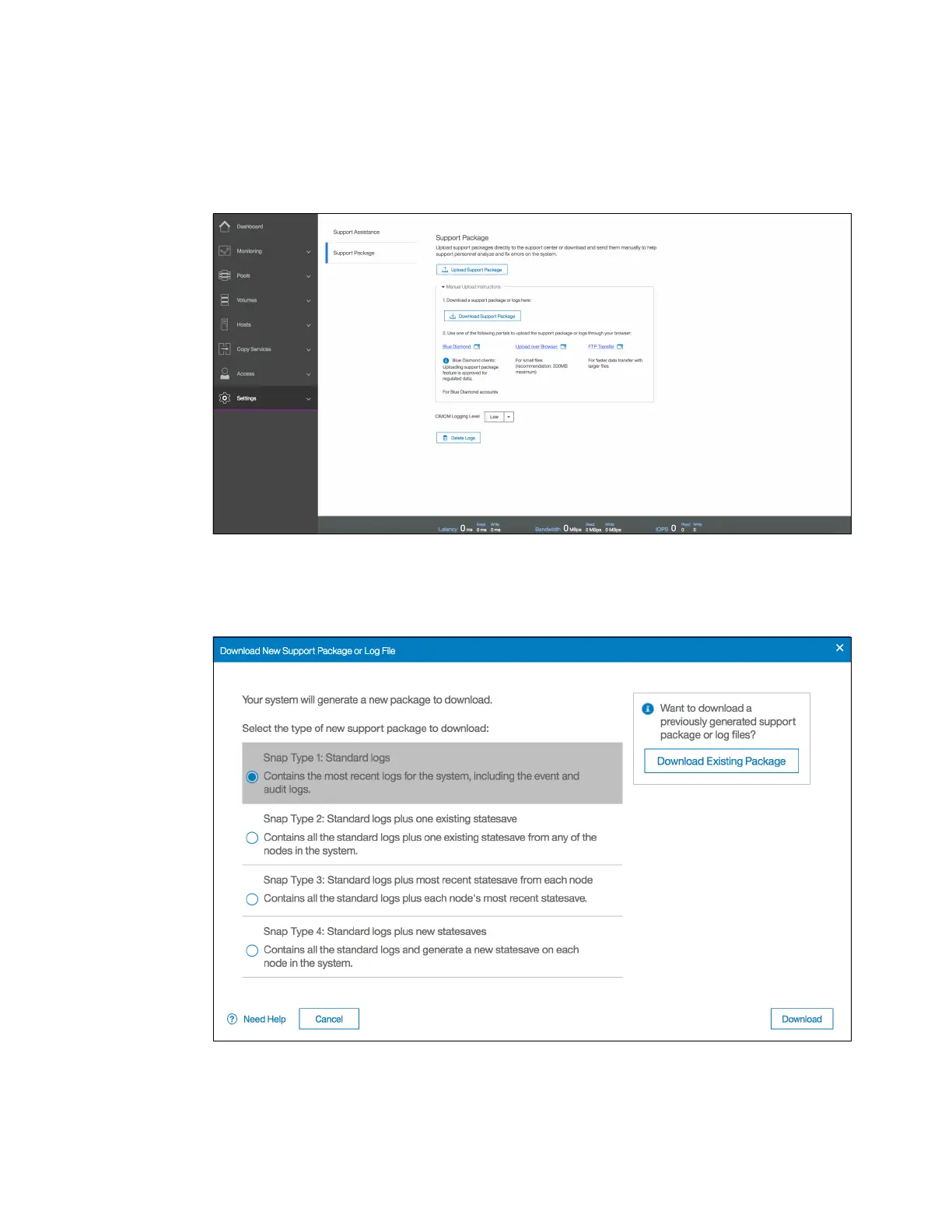 1. Navigate to Settings → Support. In the Support panel click Support Package as shown in