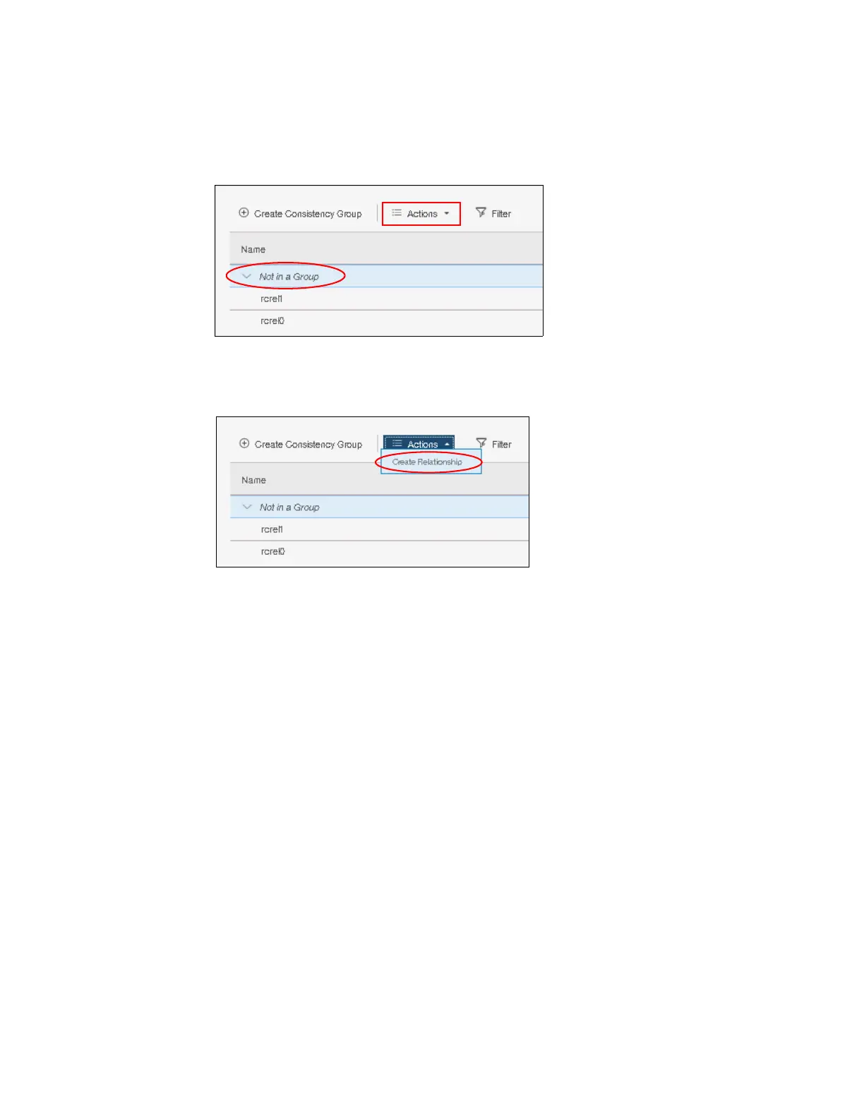 Complete the following steps to create stand-alone copy relationships: