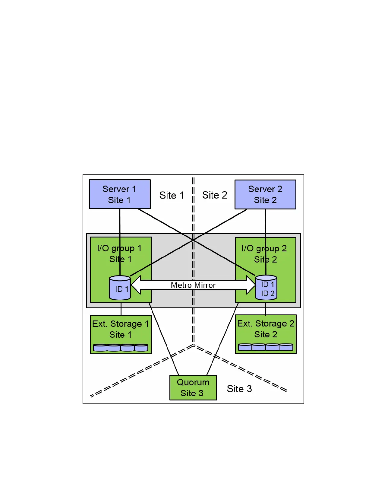 The host accesses both I/O groups, as shown in Figure 10-156. The original Metro Mirror