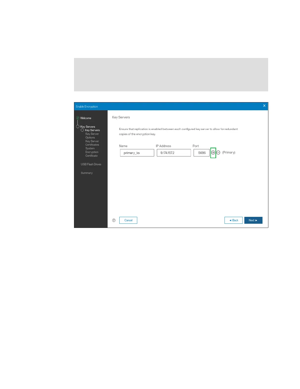 3. The wizard moves to the Key Servers tab, as shown in Figure 13-42. Enter the name and