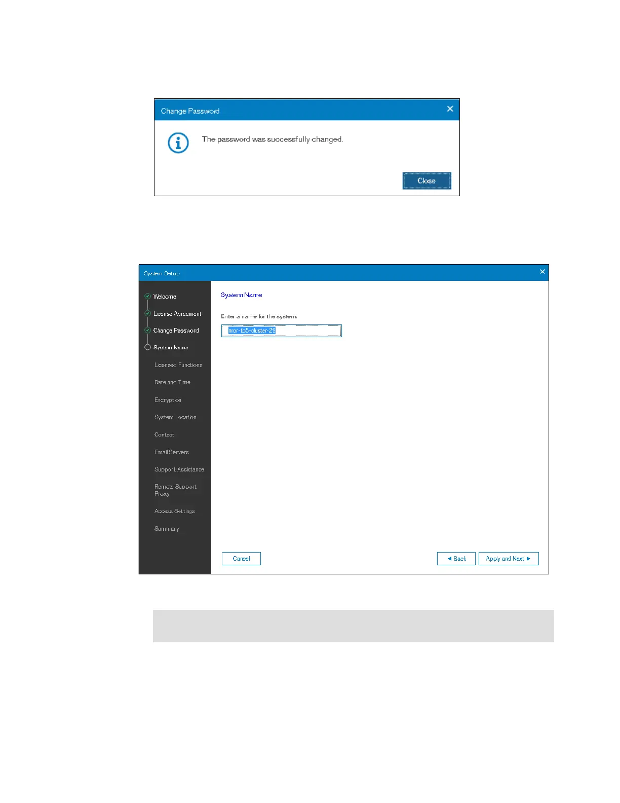 7. In the System Name window, enter the system name and click Apply and Next, as shown