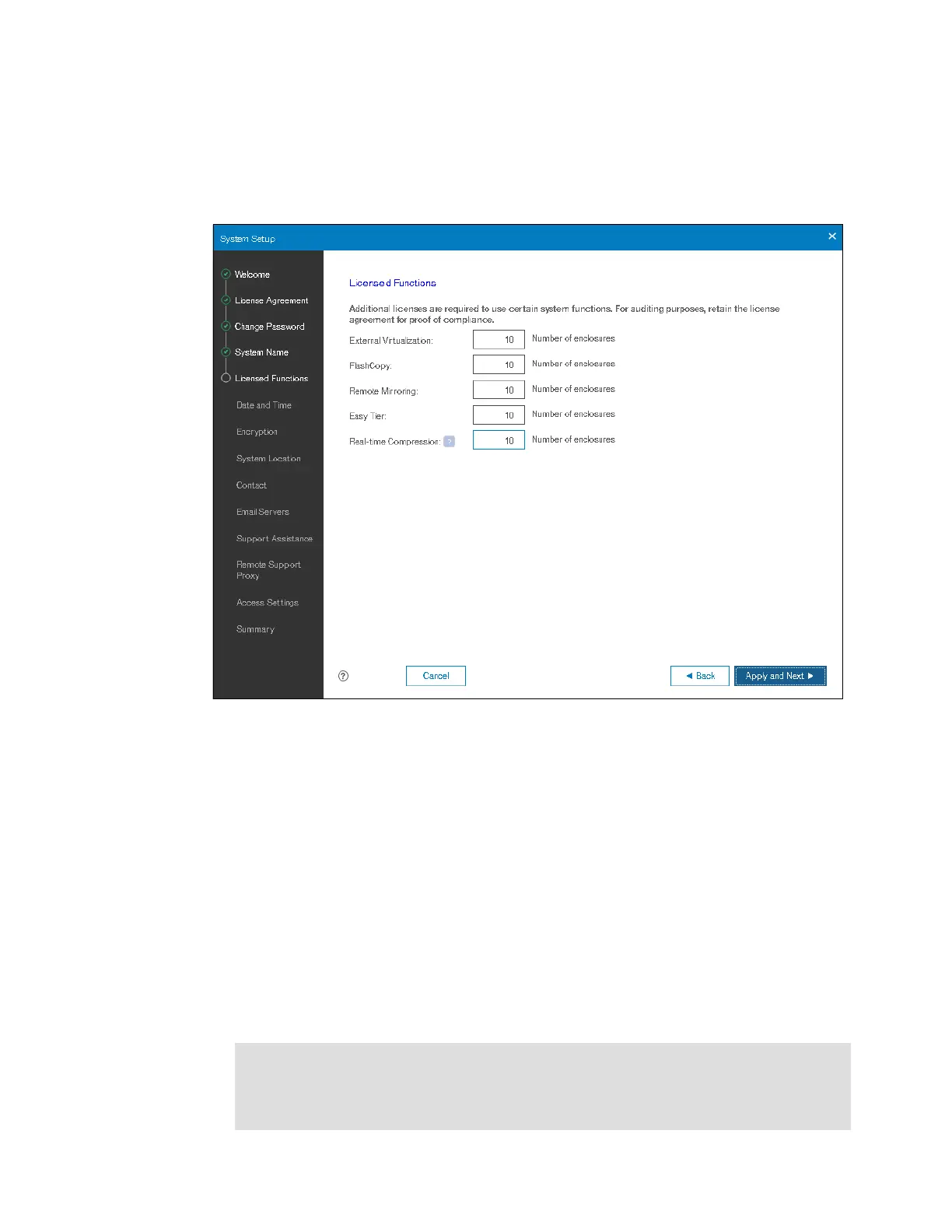 – Easy Tier: Enter the number of enclosures that are licensed to use Easy Tier function.