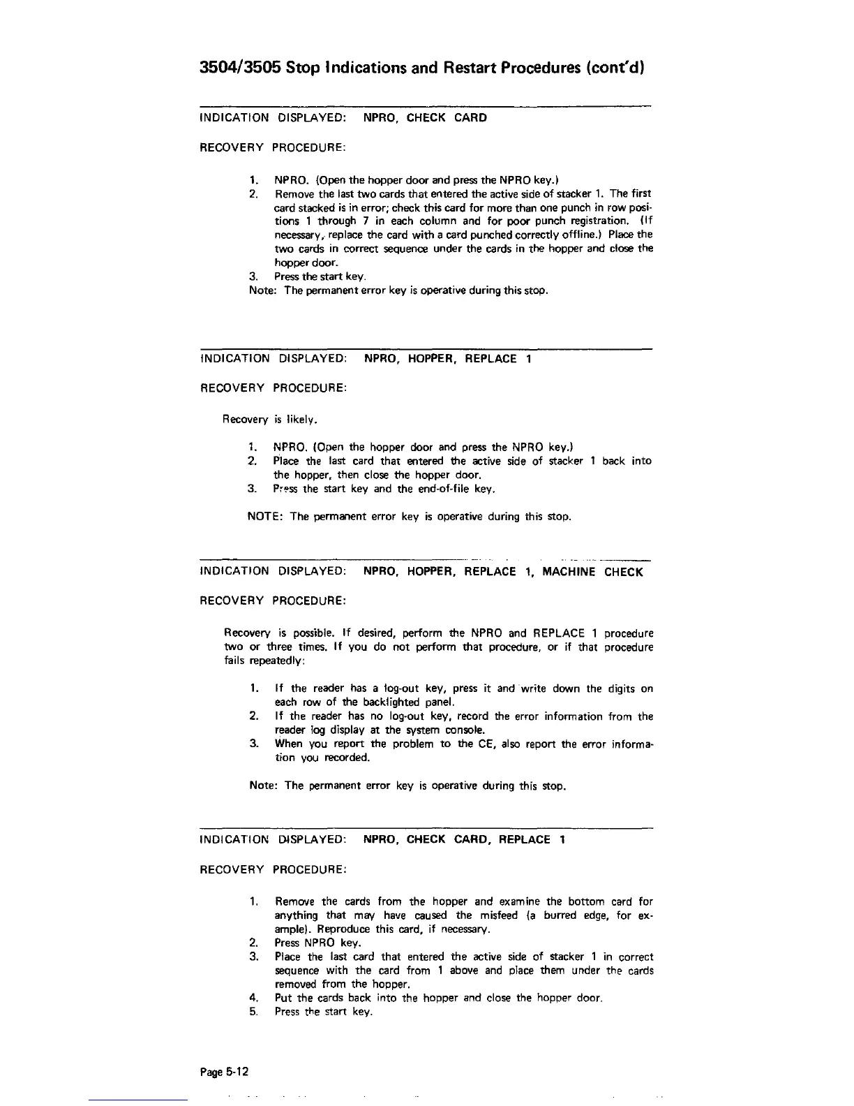 INDICATION DISPLAYED: NPRO, HOPPER, REPLACE 1, MACHINE CHECK