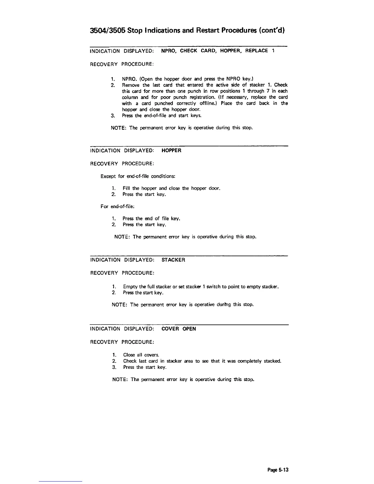 INDICATION DISPLAYED: NPRO, CHECK CARD, HOPPER, REPLACE 1