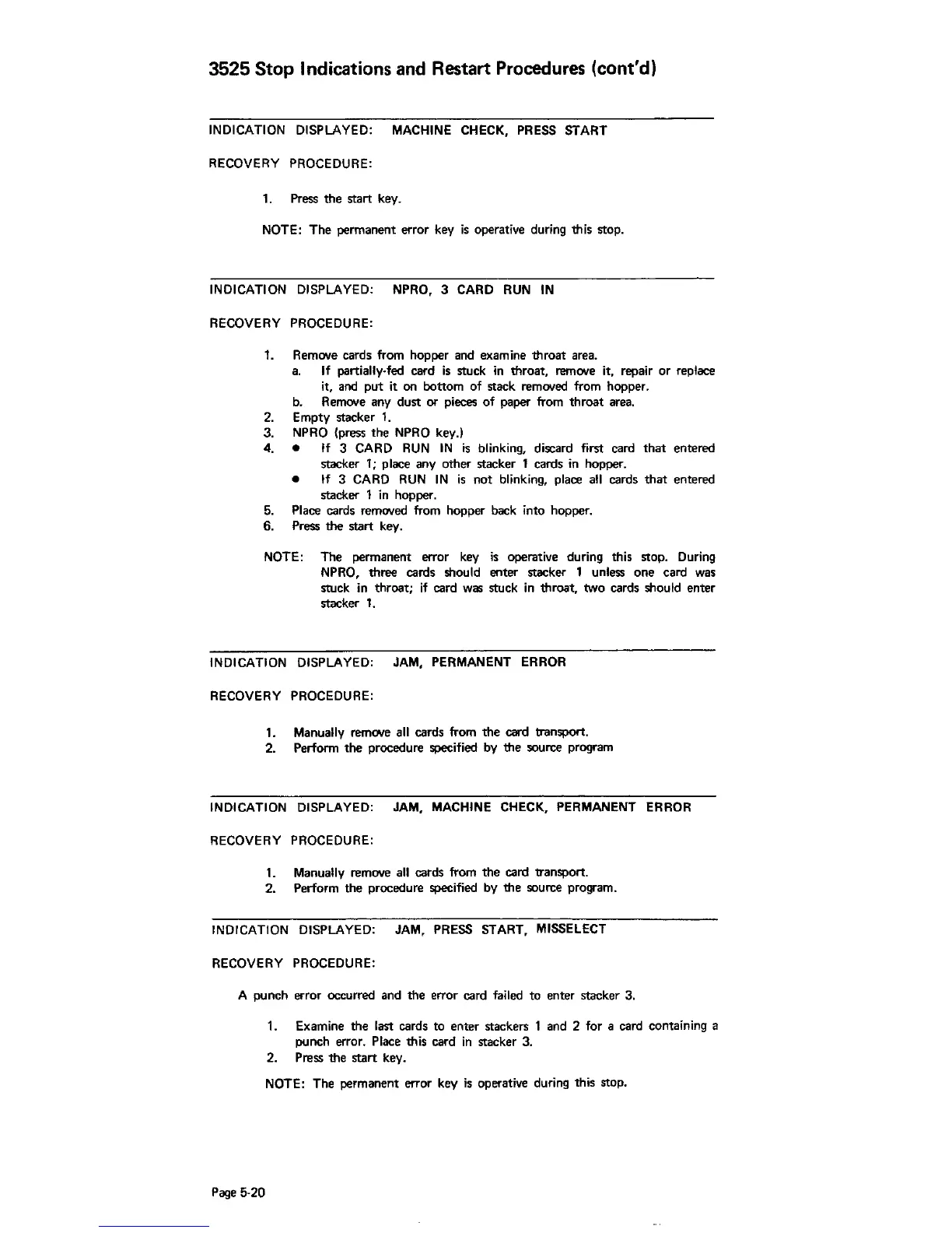 INDICATION DISPLAYED: JAM, MACHINE CHECK, PERMANENT
