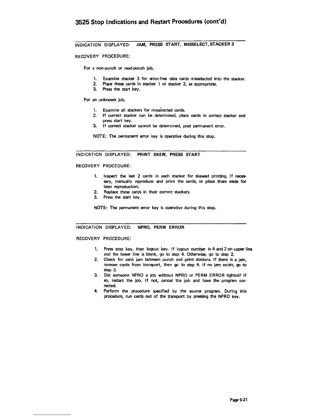 INDICATION DISPLAYED: JAM, PRESS START, MISSELECT, STACKER 3
