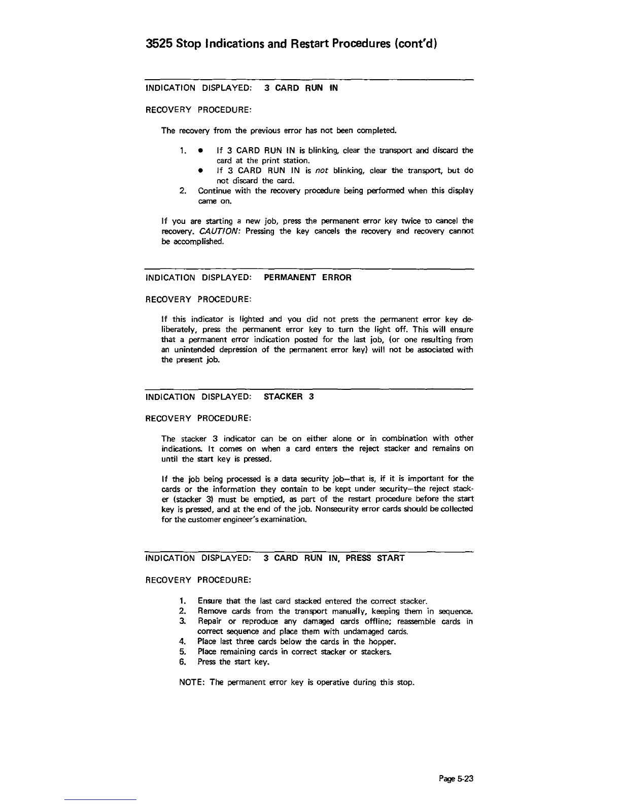 Stop Indications and Restart Procedures (cont'd)