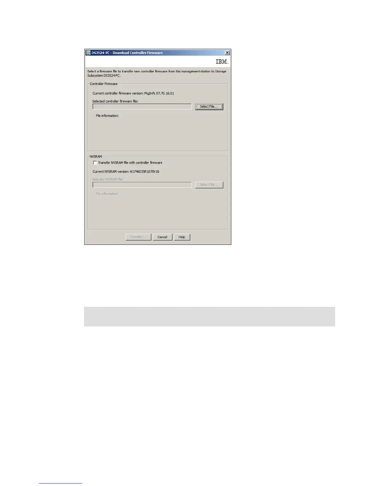 NVSRAM, you select and specify the NVSRAM firmware file to transfer
