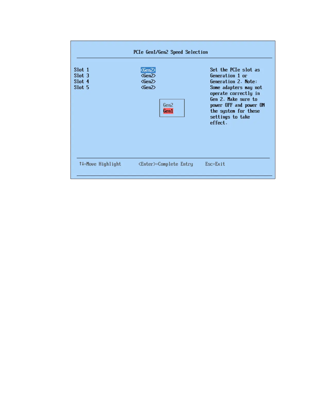 Figure 7-15 PCIe slot speed selection panel to force Gen1 compliance