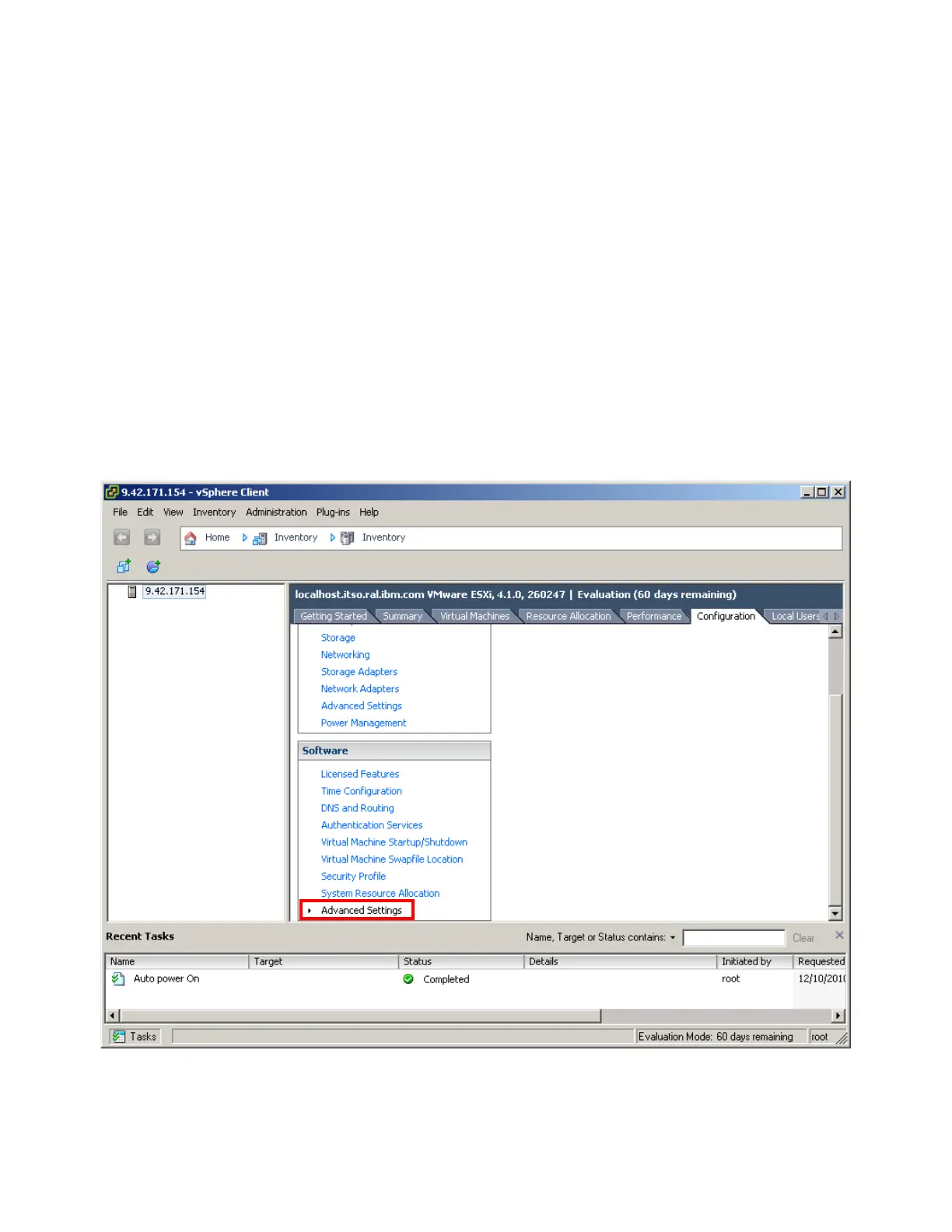i. Select the Configuration tab of the host and click Advanced Settings under the