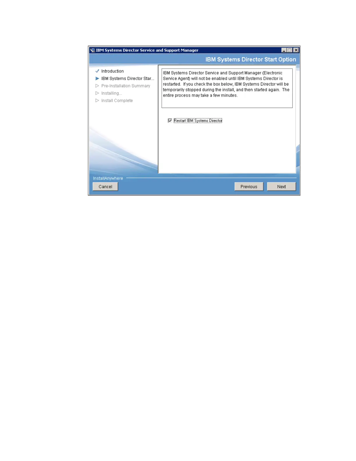 Figure 9-34 Restart IBM Systems Director option
