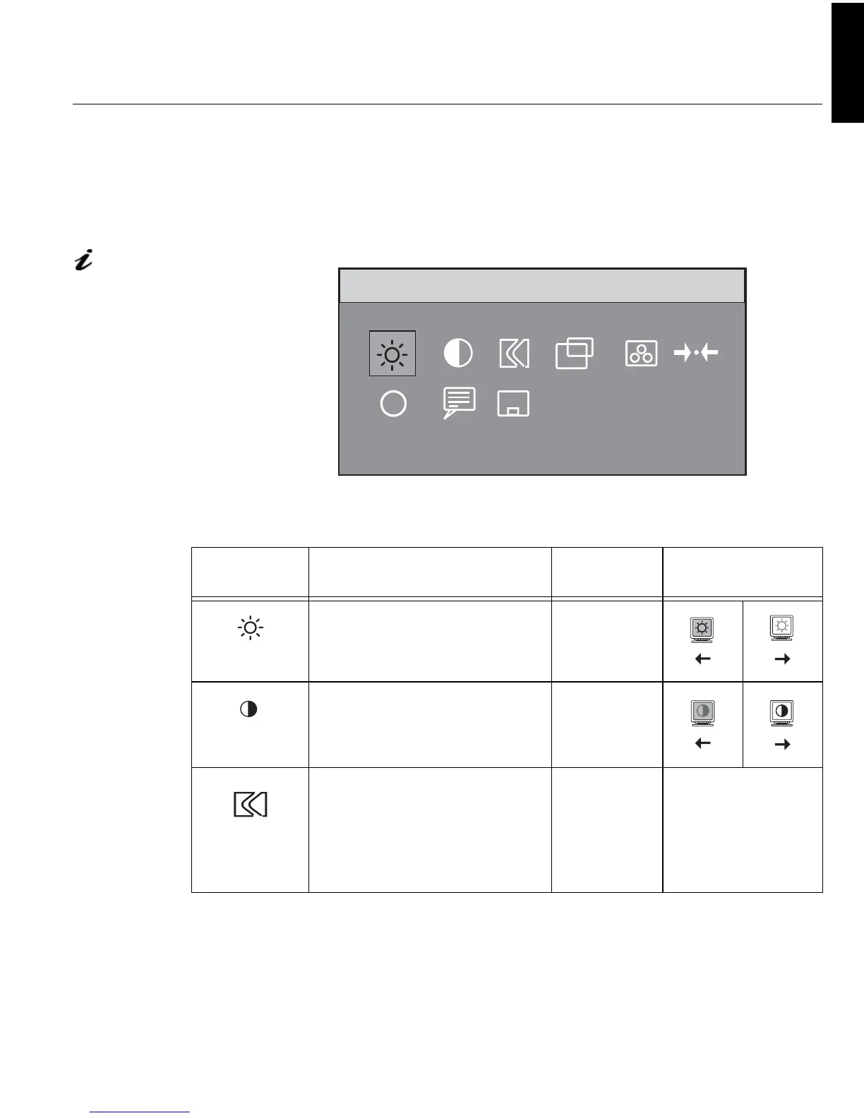 OSD Icon Description Sub-menu(s)