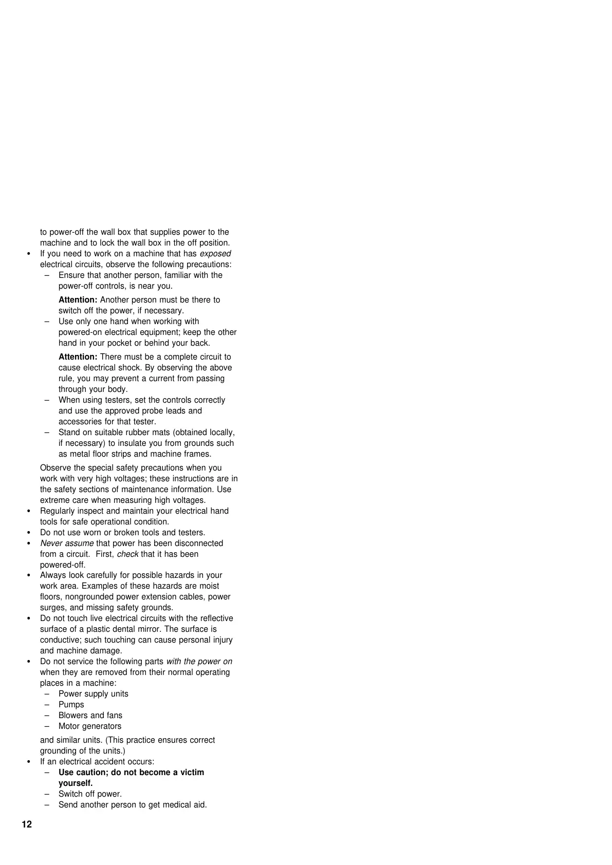 electrical circuits, observe the following precautions: