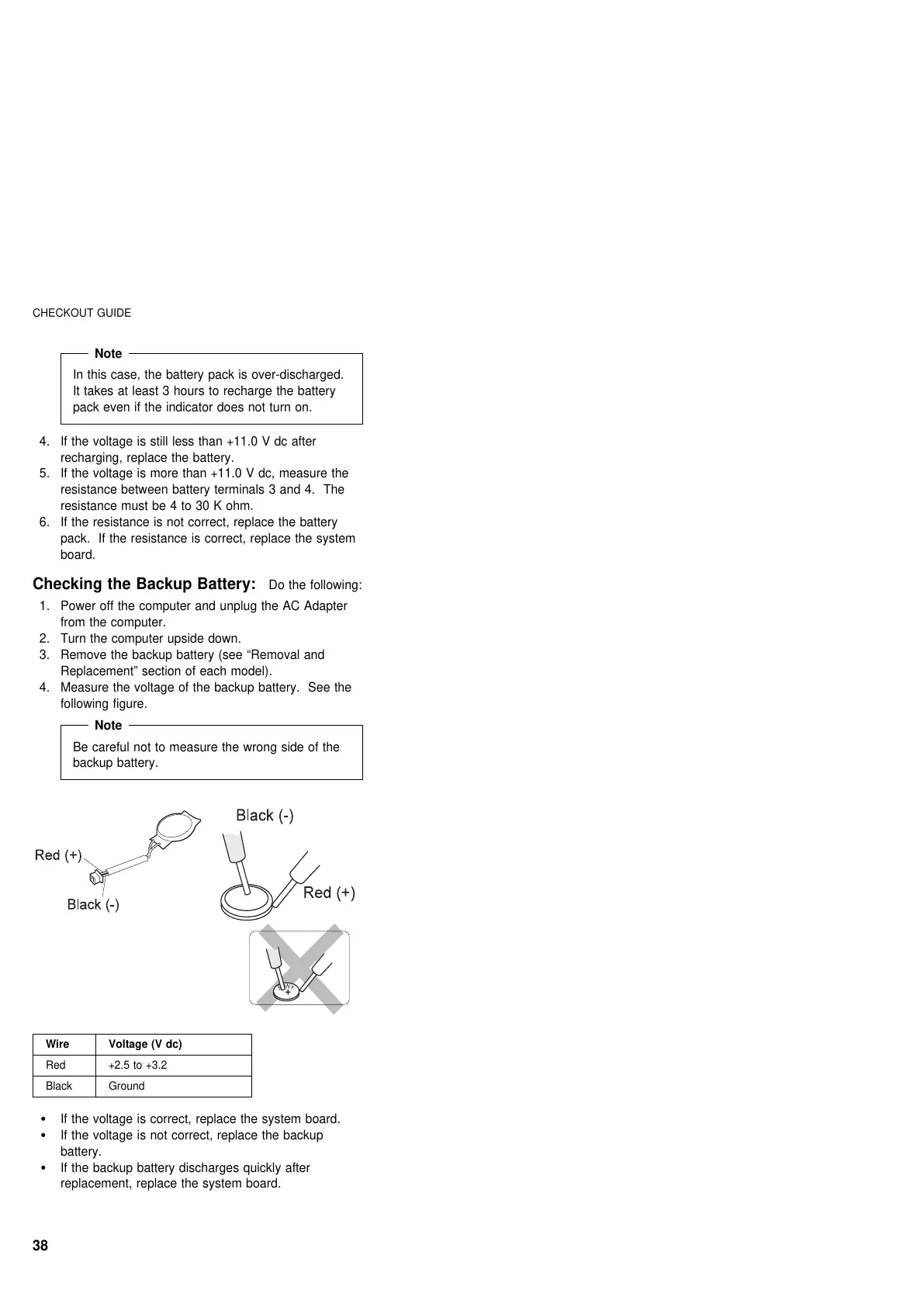 If the voltage is not correct, replace the backup