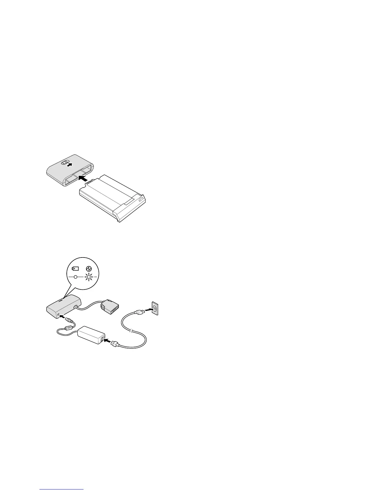 2 While sliding the adapter latch to release it, slide the battery pack straight into