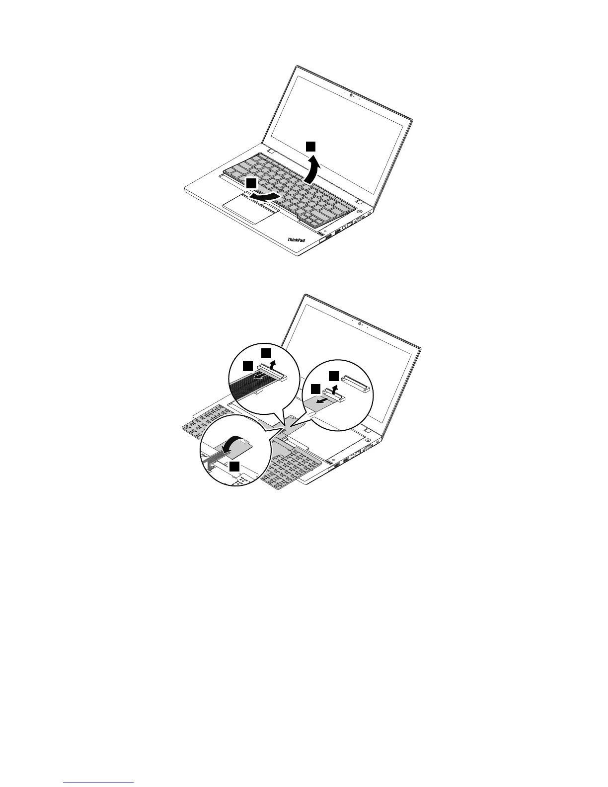 Putthekeyboardonthepalmrestanddetachtheconnectors.Thenremovethekeyboard.