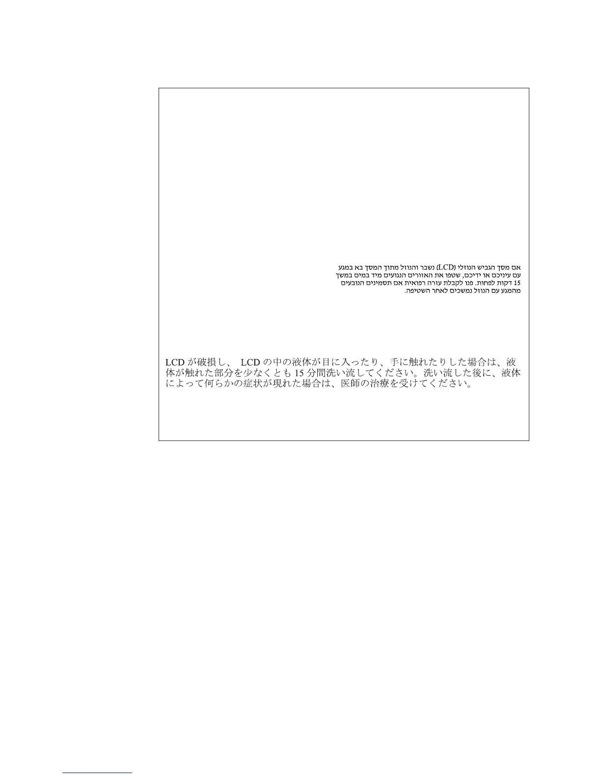 Si la LCD se rompe y el fluido de su interior entra en contacto con sus ojos o sus manos,