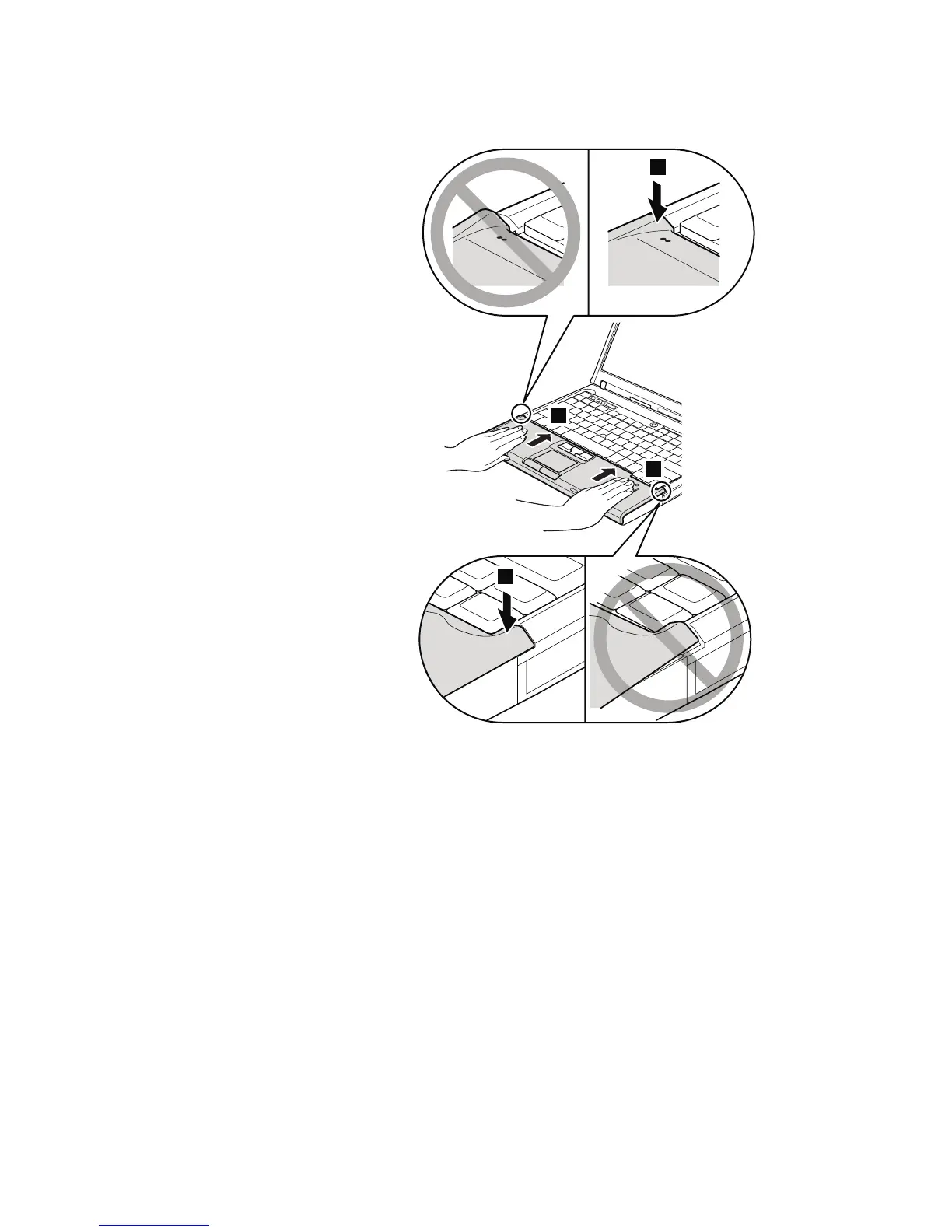 edge 2 and the right-top edge 3 of the palm rest until they latch.