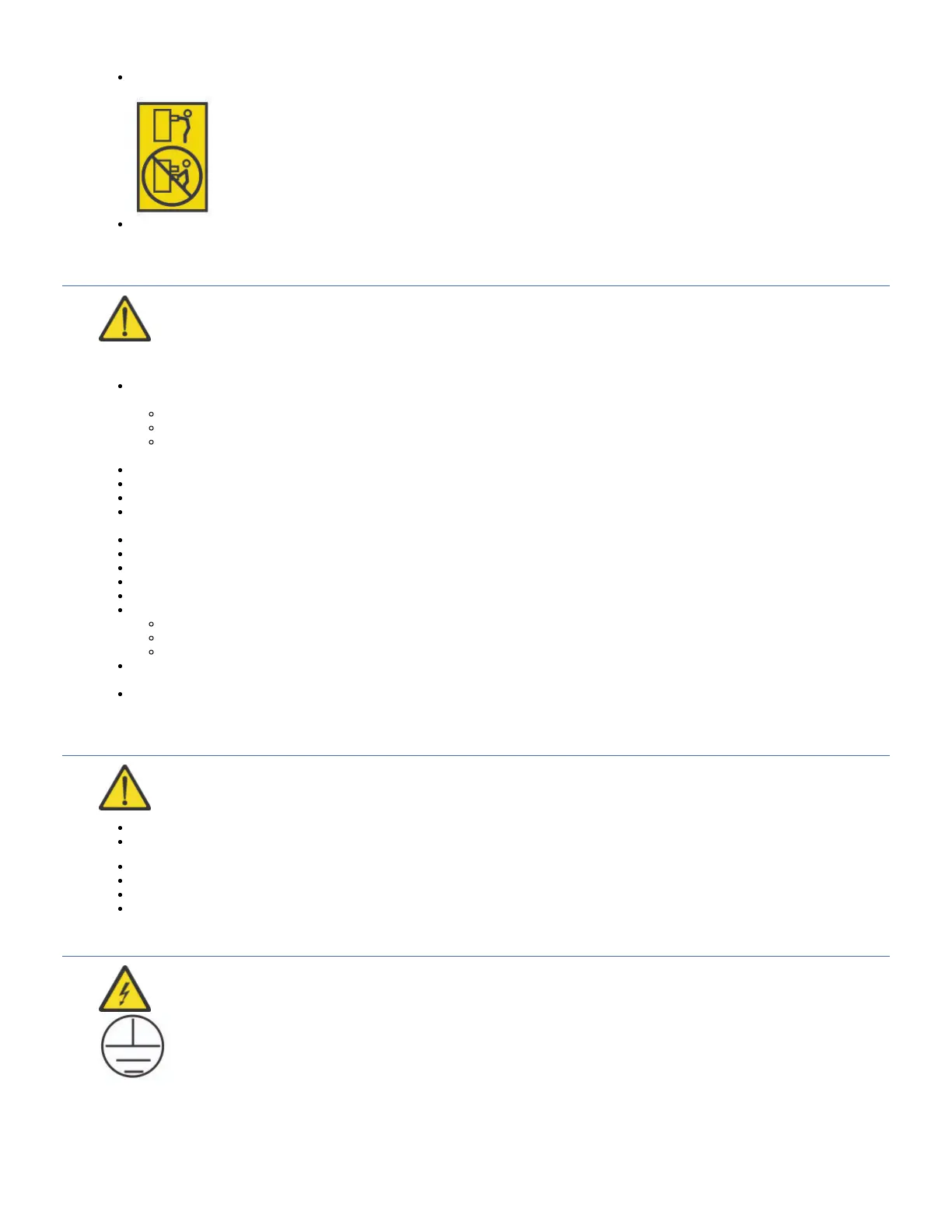 (For sliding drawers) Do not pull out or install any drawer or feature if the rack stabilizer brackets are not attached to the rack. Do not pull out more than one drawer