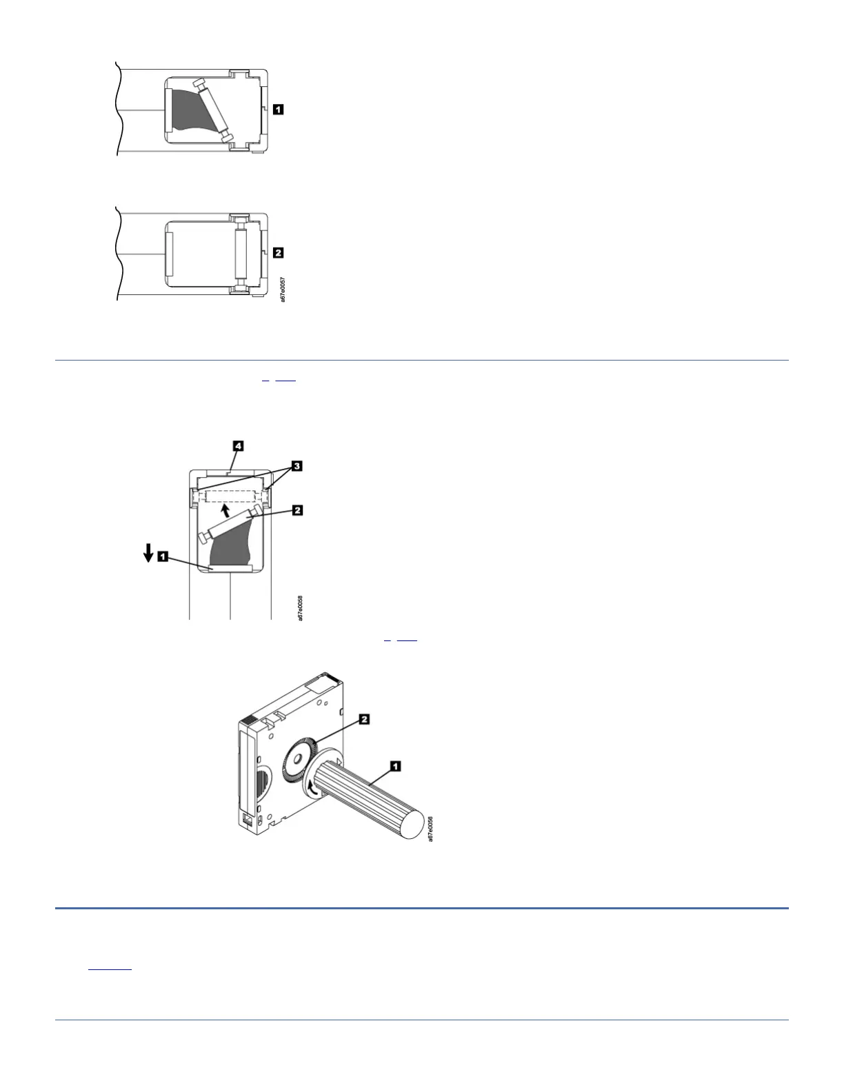 1. Slide open the cartridge door (1 in Figure 2) and locate the leader pin 2 (you might need to shake the cartridge gently to roll the pin toward the door).