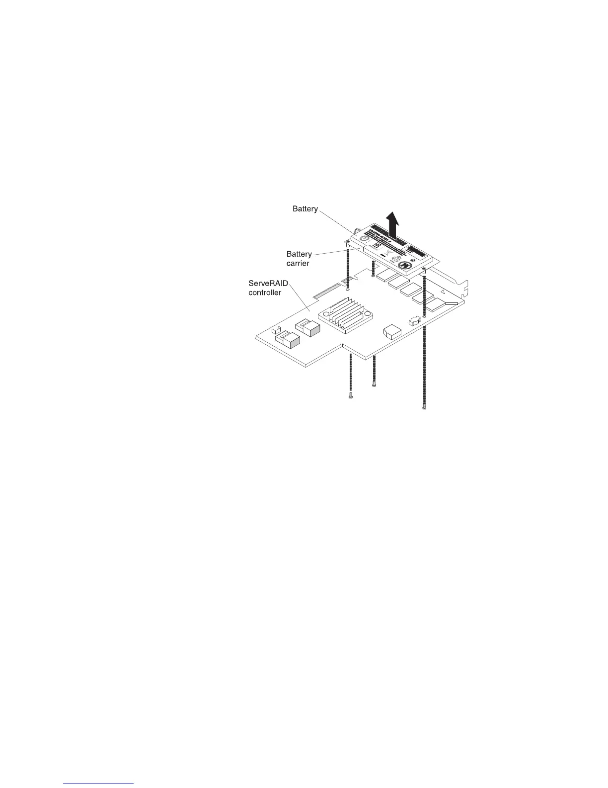 remove the three screws that secure the battery carrier to the SAS controller.
