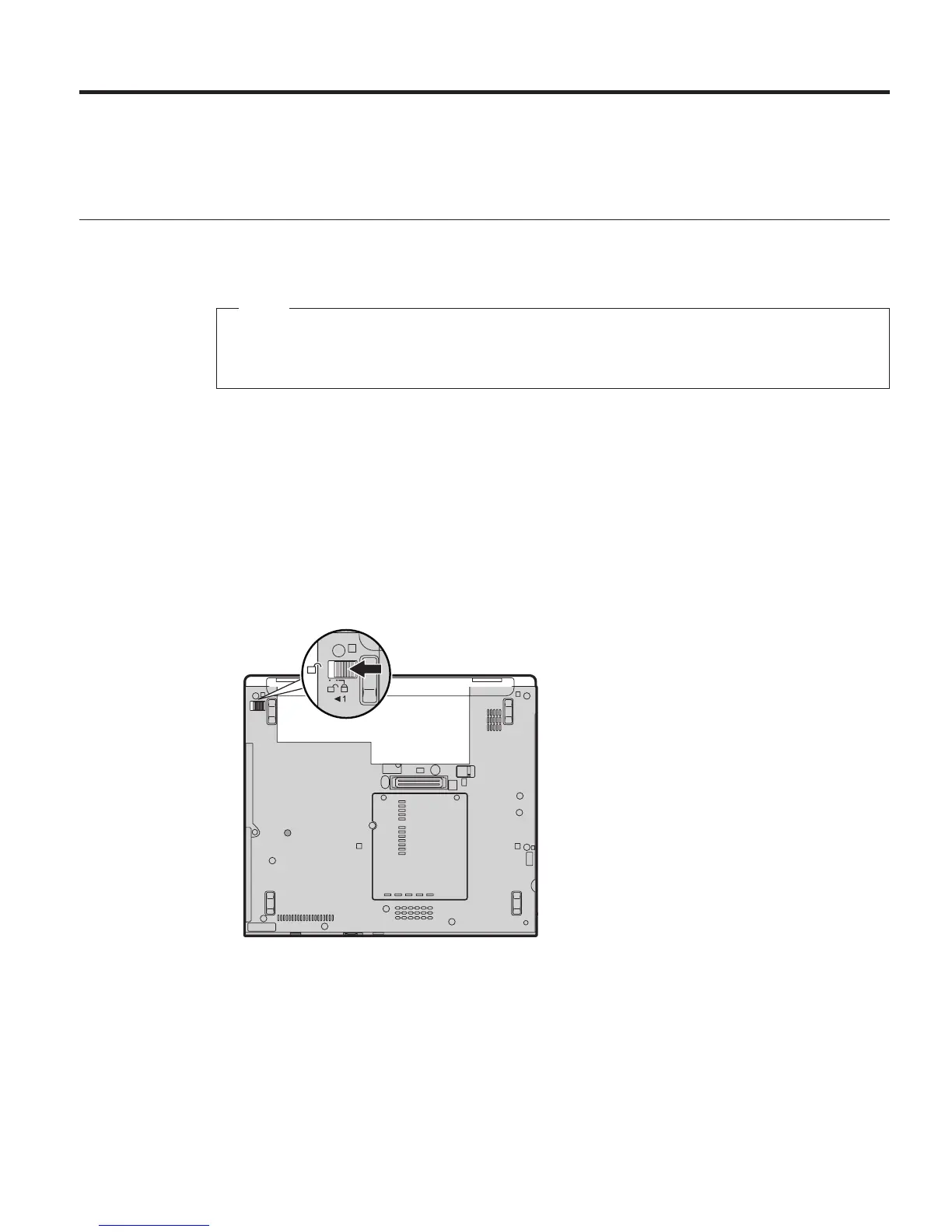 3. バッテリー・ロックをアンロック位置にスライドさせます。