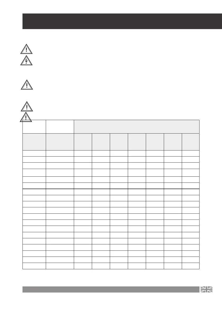 power and cable length. Below is a table to help you make the right choice of cable: