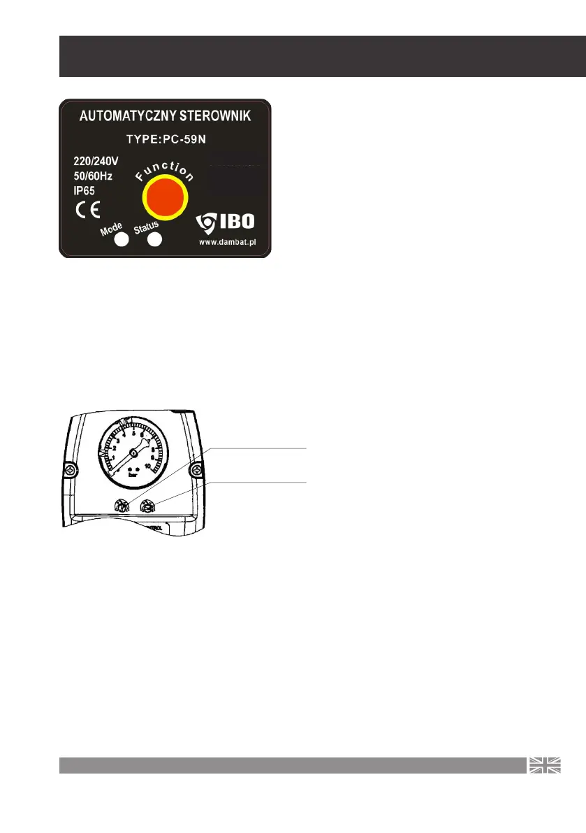 sets the cut-o and on pressure with two knobs located under the pressure gauge.