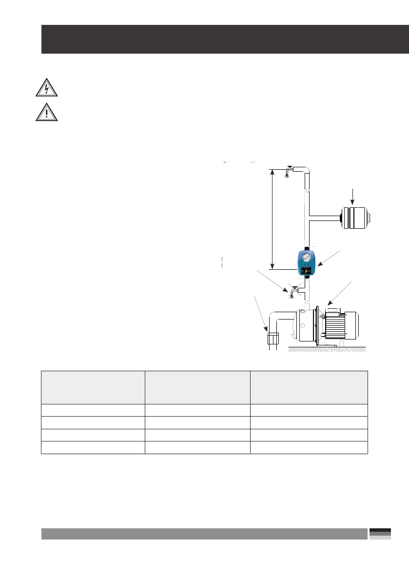 Das Gerät muss auf der Pumpendruckseite senkrecht zwischen Pumpe und erstem