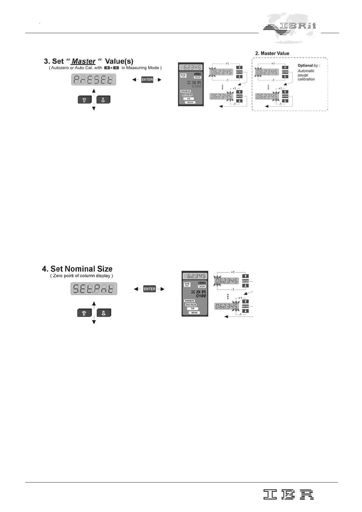 On Automatic zero adjustment ( do this by placing the master piece into the measuring fixture and press