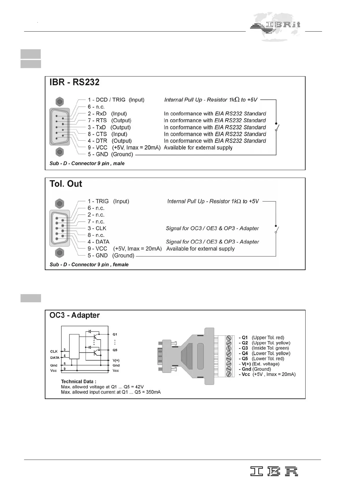 IBR C100-AE - 8 Pin Assignments of Connectors; Connectors of the Column Gauge; Plug-In Terminal Blocks