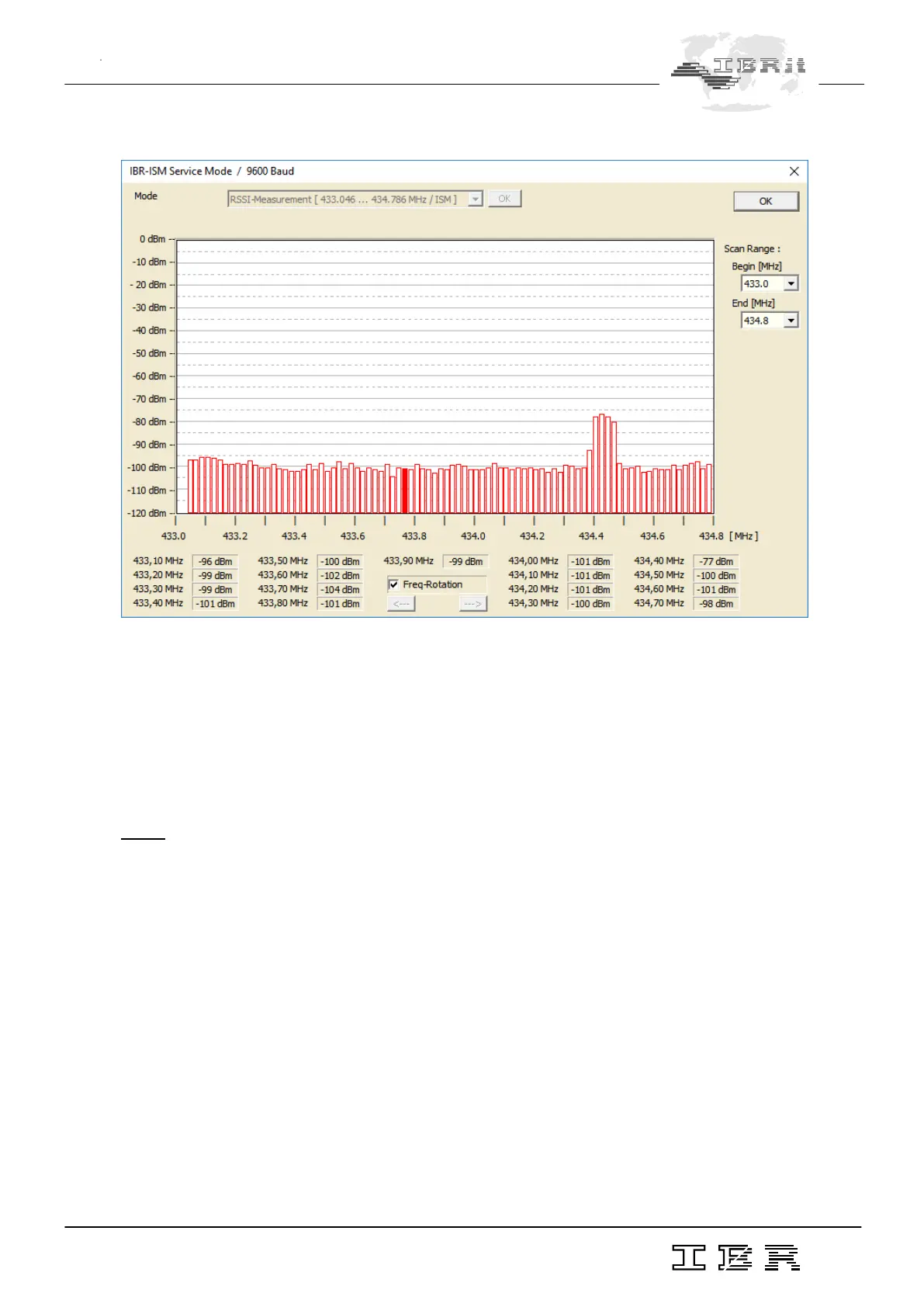 434.4 MHz. Both will in this strength not influence the receiving of values from the ISM or IBRit-rf1 radio