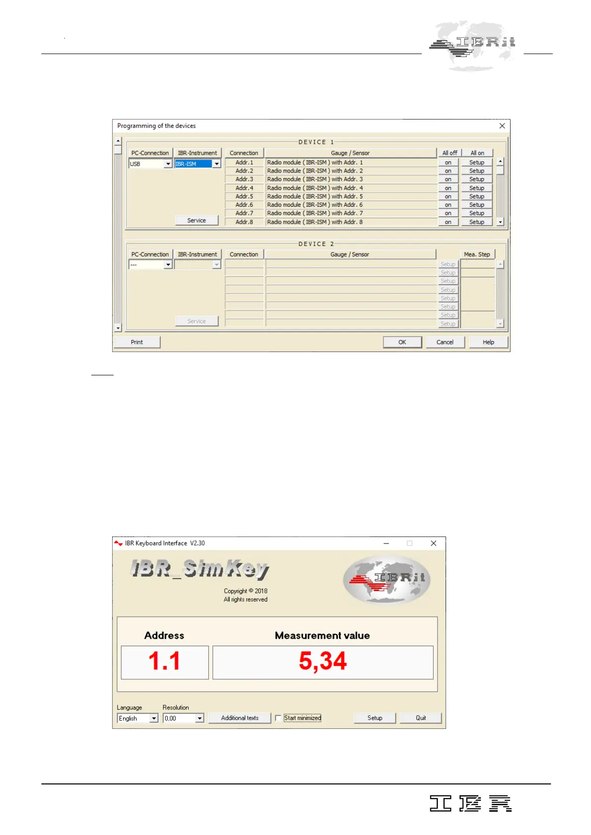 When the selections concerning the PC - connection and the IBR - instrument have been made, the