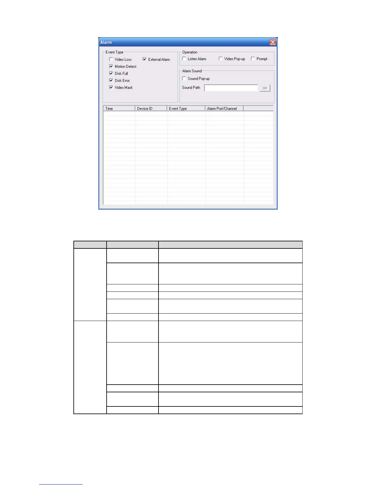 Sound pop up System sends out alarm sound when alarm occurs.
