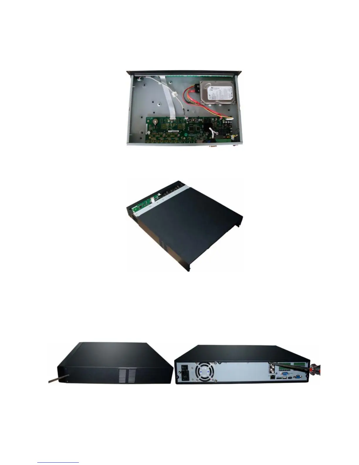 Please put the cover back and then fix the screws in the rear panel. See