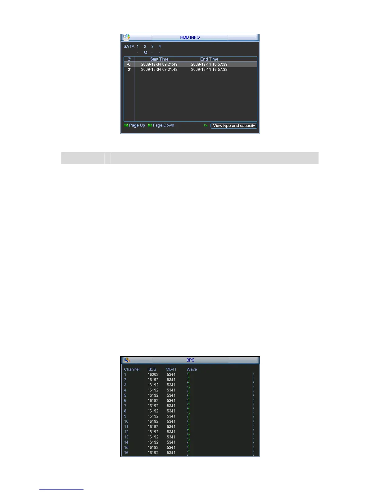 Here is for you to view current video data stream (KB/s) and occupied hard disk storage (MB/h).